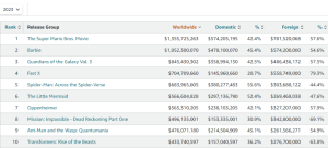 2023 Worldwide Box Office. Box Office Mojo. (n.d.). https://www.boxofficemojo.com/year/world/2023/
